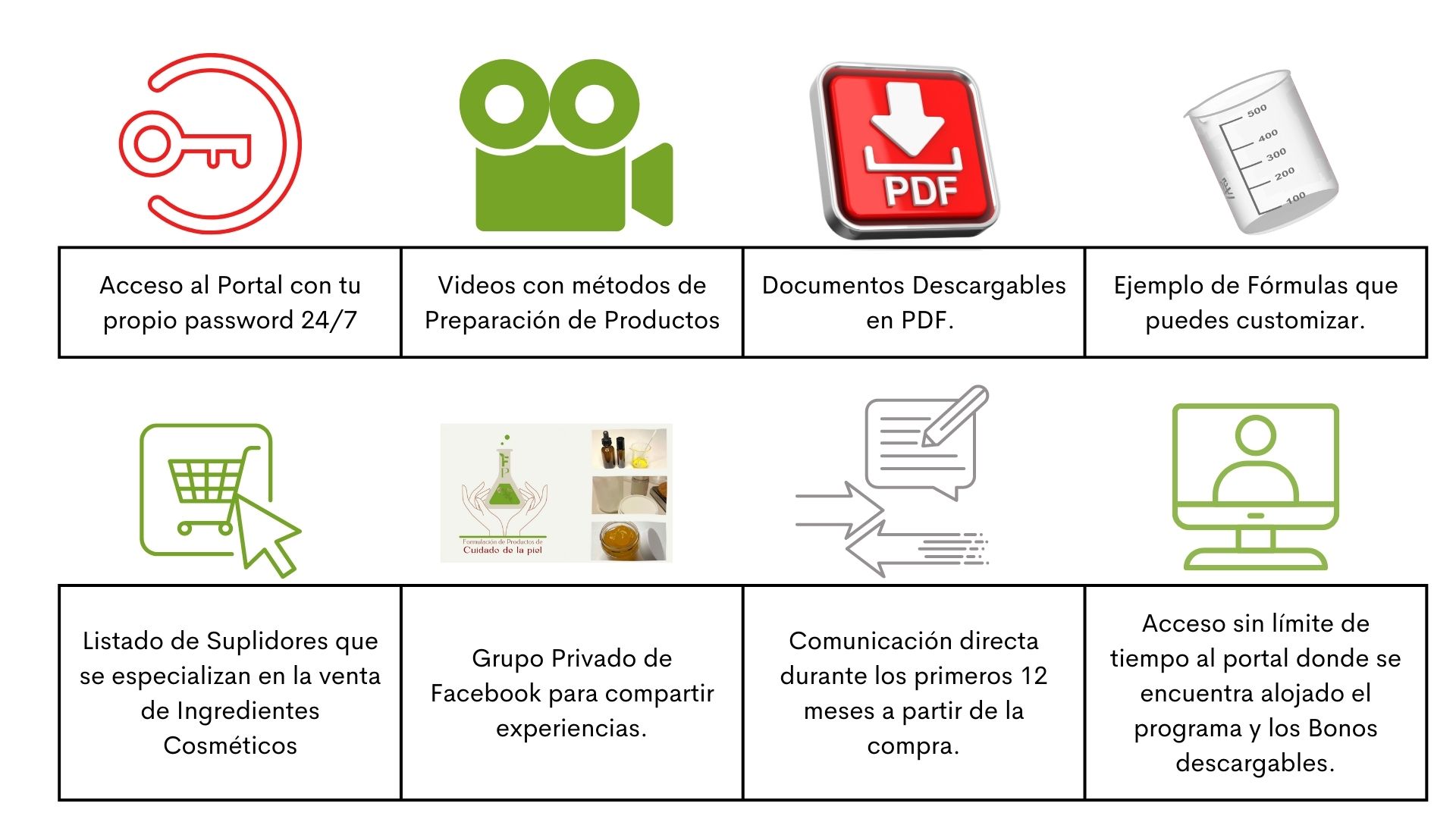 ✅ Diseñar paso a paso tus formulas cosméticas.
